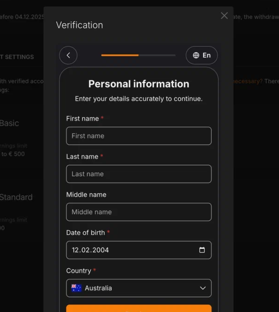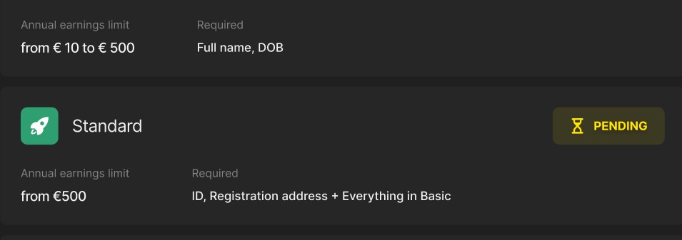 Once you have filled out the form, your data will be sent for processing and your verification status will appear as “Pending.”