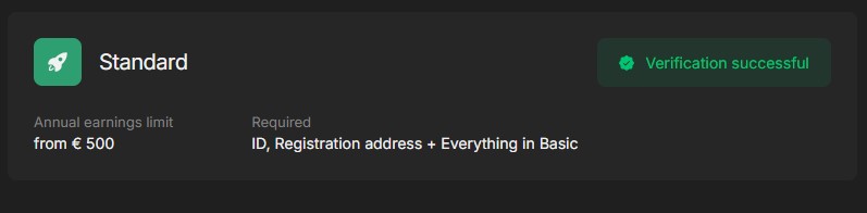 Congratulations! You have successfully passed the verification process and can use all the features of the service.